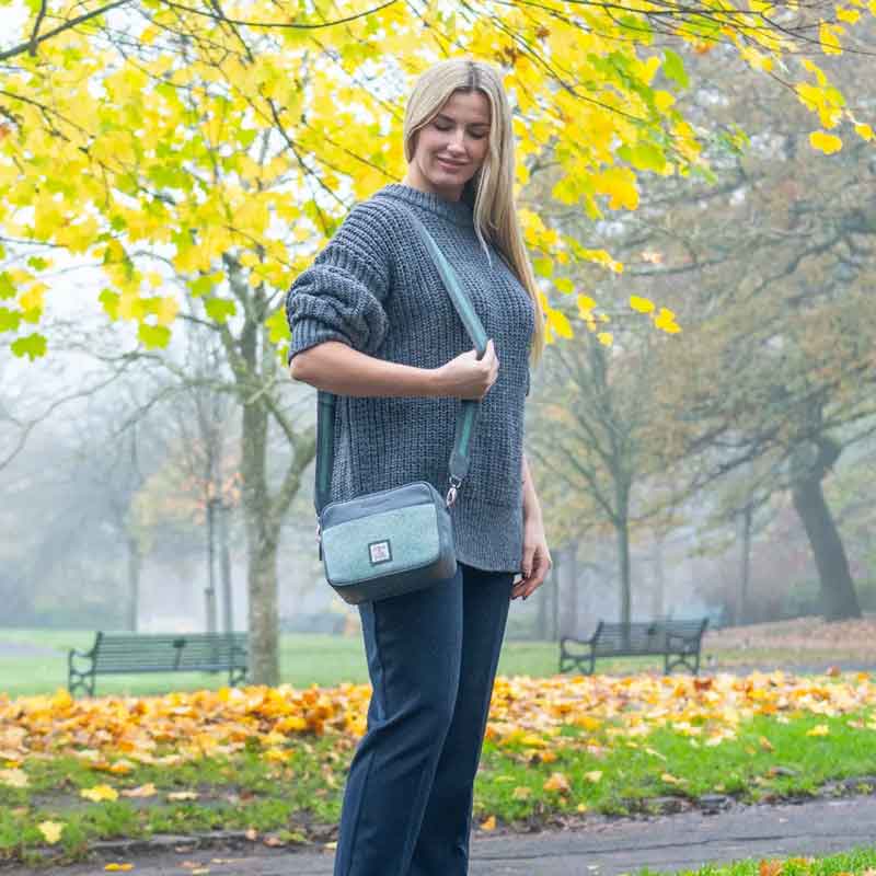Harris Tweed Camera Bag In Turquoise Herringbone