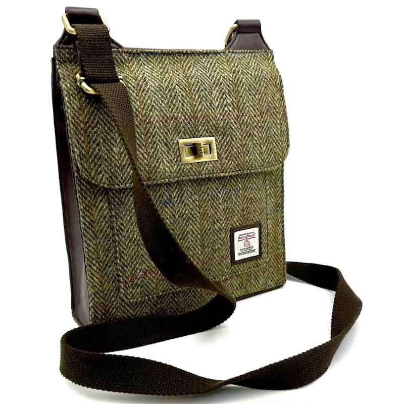 Harris Tweed Shoulder Bag, The Ellon, Islander, Dark Green Herringbone