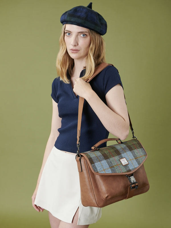 Harris Tweed The Laptop Satchel, Chestnut Blue Tartan