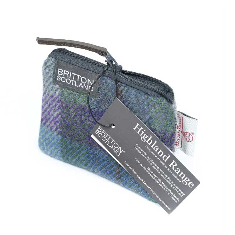 Harris Tweed Highland Card Purse Blue Green Plaid