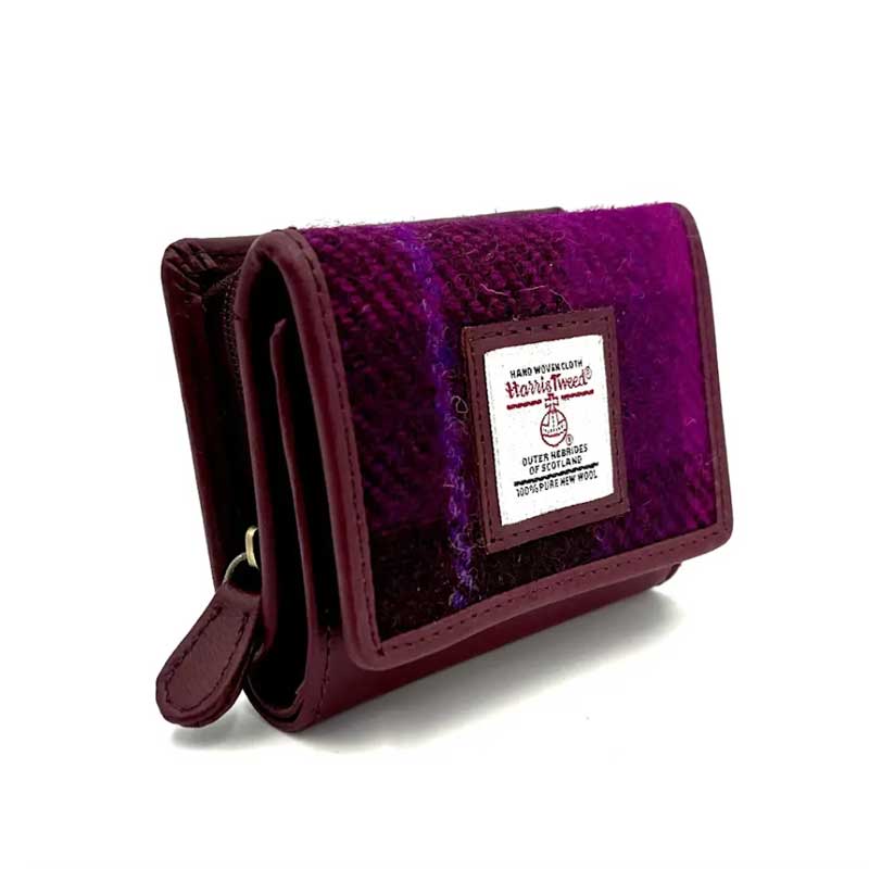 Harris Tweed Trifold Purse In Purple Check