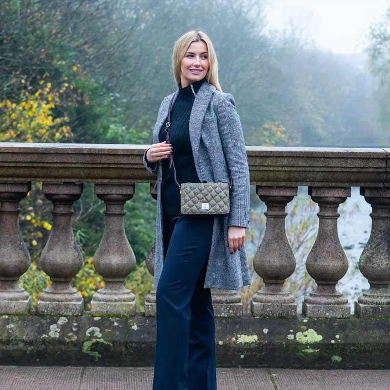 De minimalistische Harris Tweed portemonnee heeft 6 kaartsleuven, een muntvak en 2 vakken voor briefjes. Onze veelzijdige Harris Tweed portemonnee voegt een vleugje luxe toe aan uw dagelijkse outfit.