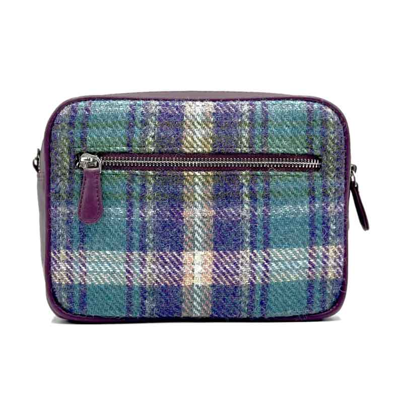Deze Harris Tweed cameratas is ontworpen met twee interne ritsvakken voor al je essentiële spullen, een extern ritsvak en een open vak met een magnetische sluiting.