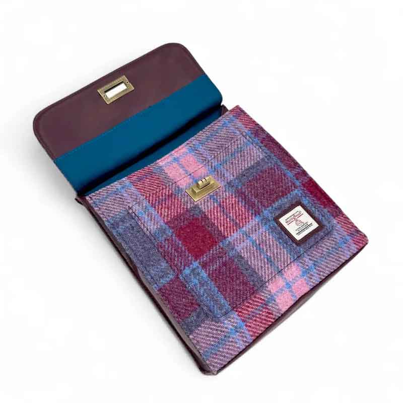 Met onze kenmerkende Harris Tweed afwerking in diverse Harris Tweed kleuren. De mini satchel tas heeft een lange, verstelbare schouderband.